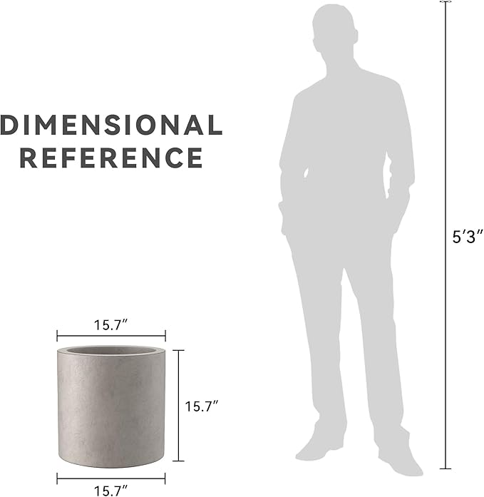 Kante 15.7" Dia Round Concrete Planter, Modern Style Large Cylindrical Plant Pot with Drainage Hole and Rubber Plug for Indoor Outdoor Patio, Weathered Concrete