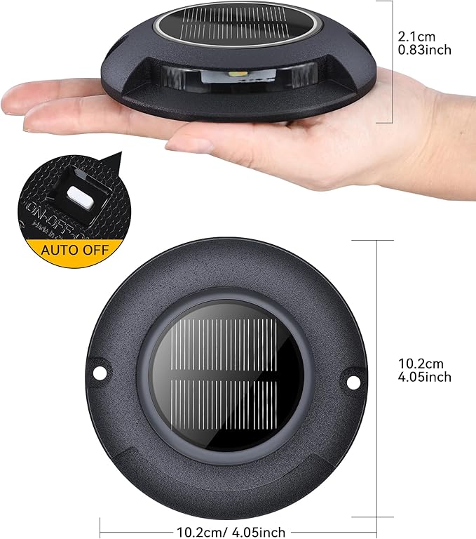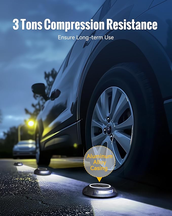 - 【Waterproof & Pressure Resistant】The outdoor solar lights are made of high-quality aluminum alloy and have been tested to withstand 3 tons of pressure and impact from cars and ships. The outdoor solar lights meet IP68 waterproof standards and can withstand any harsh weather conditions. You don't need to disassemble it in rain or snow