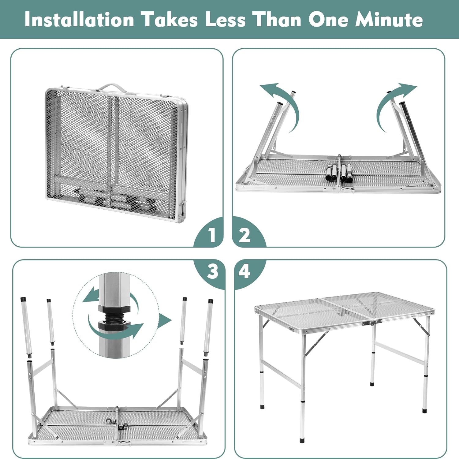 Folding Table, Easy for Storage, Compact and Portable Picnic Table for Grill, Outdoor Camping, Garden, Patio, Dining, BBQ, Party, Market, 3Ft (Medium, Silver)