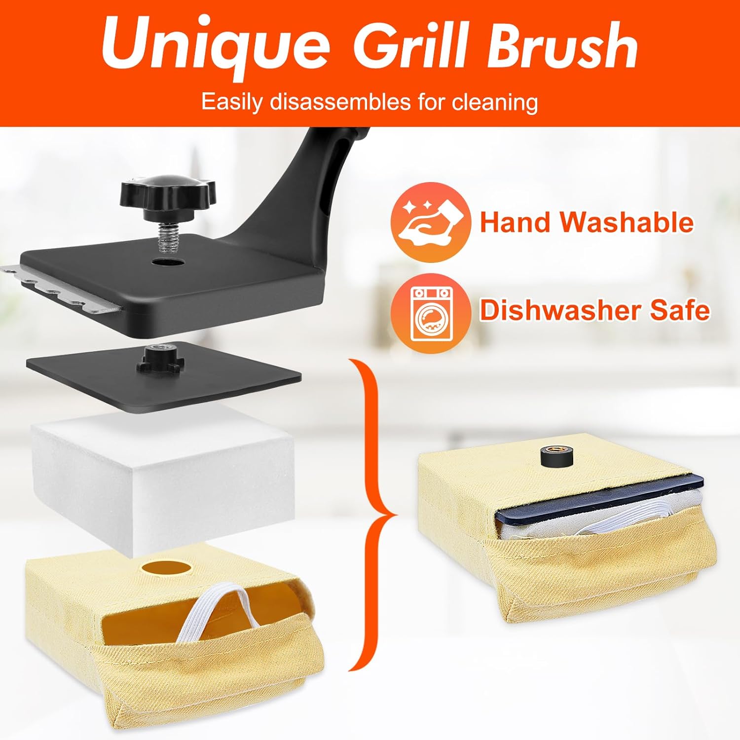 - Durable & Heat-Resistant: Our long-lasting cleaning heads of this grill cleaner bristle free brush are made from a heat retardant foam, wrapped in a high temp Aramid Fiber layer to ensure maximum longevity, and these safe grill brush for outdoor grill bristle free are dishwasher and washing machine safe (preheat grill to over 400 degrees Fahrenheit and then turn off all burners for your safety.)