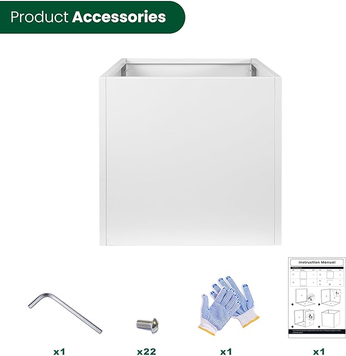 - Galvanized Steel Planter: 24" L x 24" W x 24" H. Heavy Duty Galvanized Steel Planter. Easy to Install. Package: 4 sides and a bottom surface with 2 drainage holes, Installation Manual x 1, M5 Allen wrench x 1, screw x 22, gloves x 1.