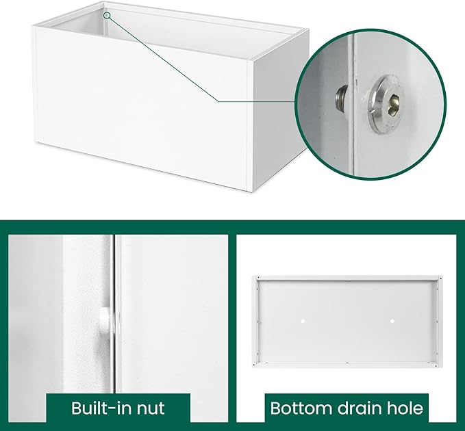 - [ White Steel Planter] Galvanized planter box is made of galvanized steel with white powder coating. Galvanized Steel Planter is wear-resistant, corrosion-resistant and long lifetime.