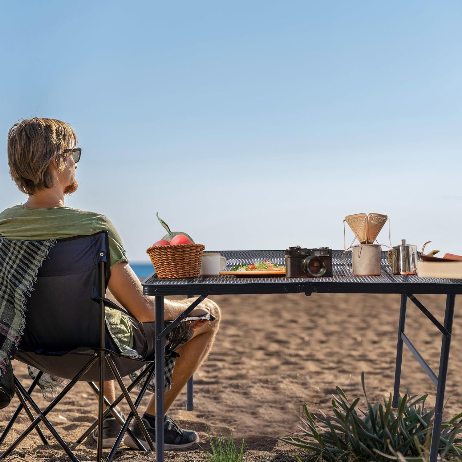 - Waterproof and heat resistant: Our camping table adopts a special coating metal mesh, which is waterproof and rust resistant. In addition, the metal mesh is made of a high temperature resistant material, the most suitable outdoor table for barbecue.