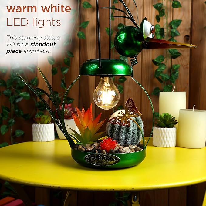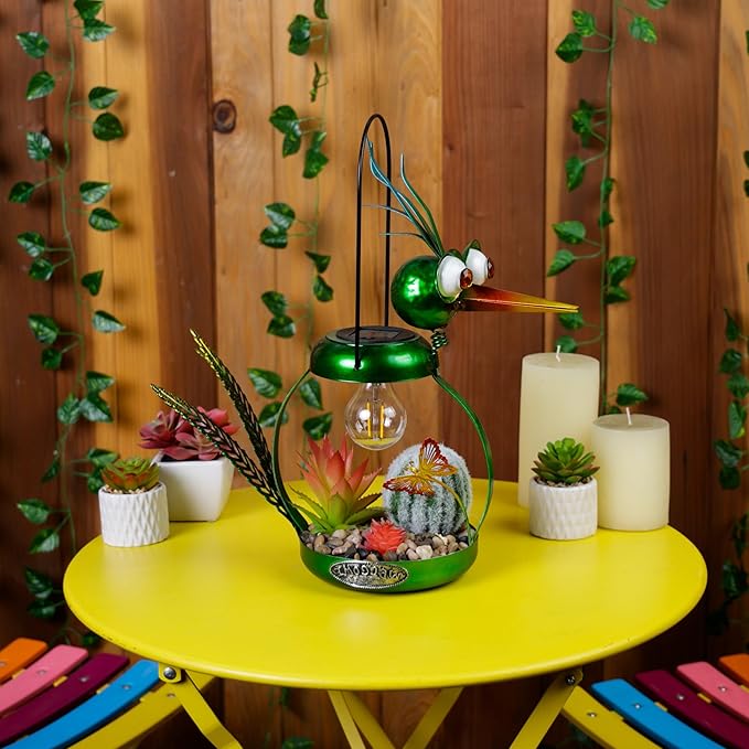 - PERFECT AND COMPACT SIZE: This iron bird lamp measures 16"L x 6"W x 16"H, making it the perfect addition to any flower bed or outdoor display