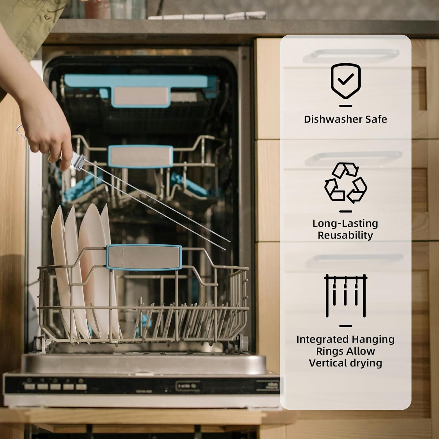 - 【High Quality Stainless Steel】Our Stainless steel skewers have excellent corrosion resistance and high temperature resistance. Even after long-term use and washing, they are not easy to rust and deform. Don't worry about the safety and taste of food being affected by rust. Dishwasher-safe design with hanging loops simplifies cleaning and storage. And it can be reused, even after several years of use, it still looks like new.