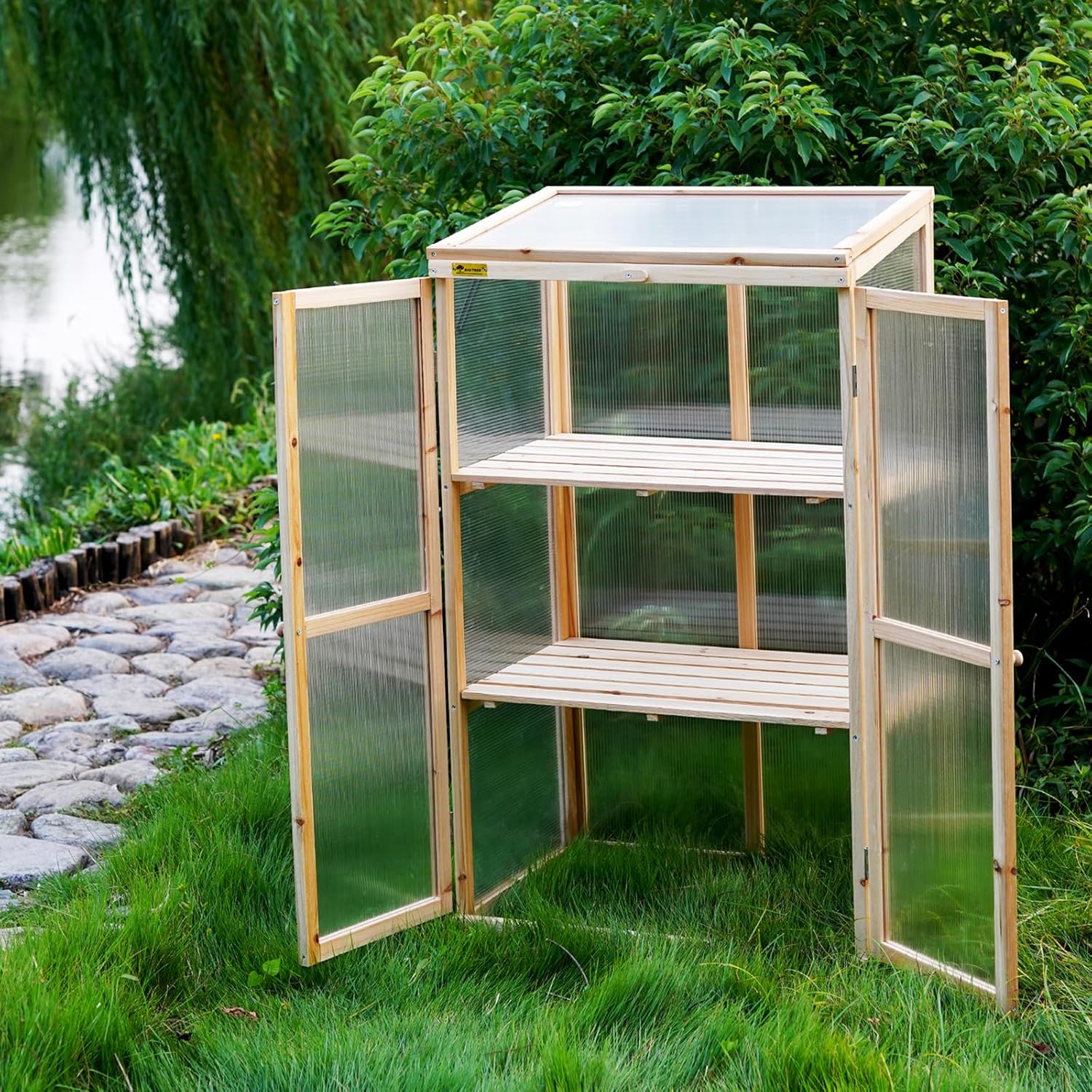 BIGTREE Wooden Green House Mini Greenhouse Indoor/Outdoor Nursery Vented Cold Frame Portable Garden Planter Raised Plants Top Opening Door (27"X19"X47")
