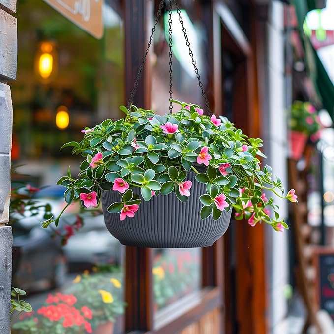 - 2 in 1 Planter pot: Our outdoor hanging planters can be hung or placed. Installing the chain plant hanger indoor to the hanging baskets is very simple. They can also easily be removed if you want pull the plant down for pruning or decorate tables