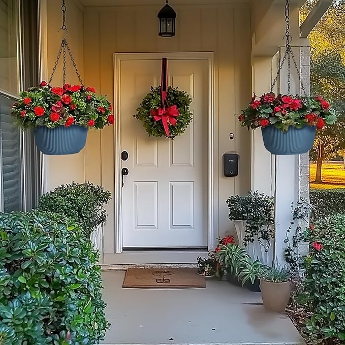 T4U 12 Inch Large Hanging Planters for Outdoor Plants, 2 Pack Self Watering Hanging Pots Indoor, Hanging Baskets for Plants,Hanging Flower Pot with Drainage Hole and Plant Hanger, Blue