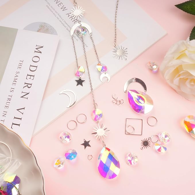 ilclviz DIY Suncatcher Making Kits Colorful Suncatcher Crystals Kit Supplies for Adults 200pcs DIY Suncatcher Prism Kit for Indoor Outdoor Window Hanging Garden Decor (Silver)