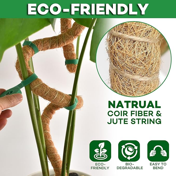- Inclusive Plant Ties: The set includes feet of sturdy plant ties, simplifying the attachment of climbing plants to bendable moss pole for plants. These flexible and durable ties allow for easy adjustments as your plants grow, without causing harm to delicate stems.
