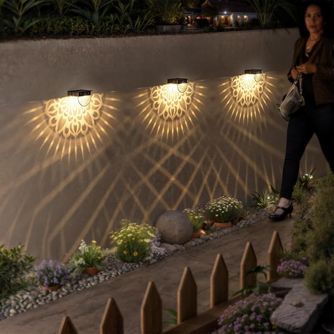 - 【Good Decoration】10 lumens of warm yellow light. The fence solar lights can project a unique and beautiful mandala pattern. In a dim environment, the solar lights can illuminate a corner of the fence or the wall and create a beautiful and warm atmosphere. They are very suitable as holiday decorations and gifts for relatives and friends