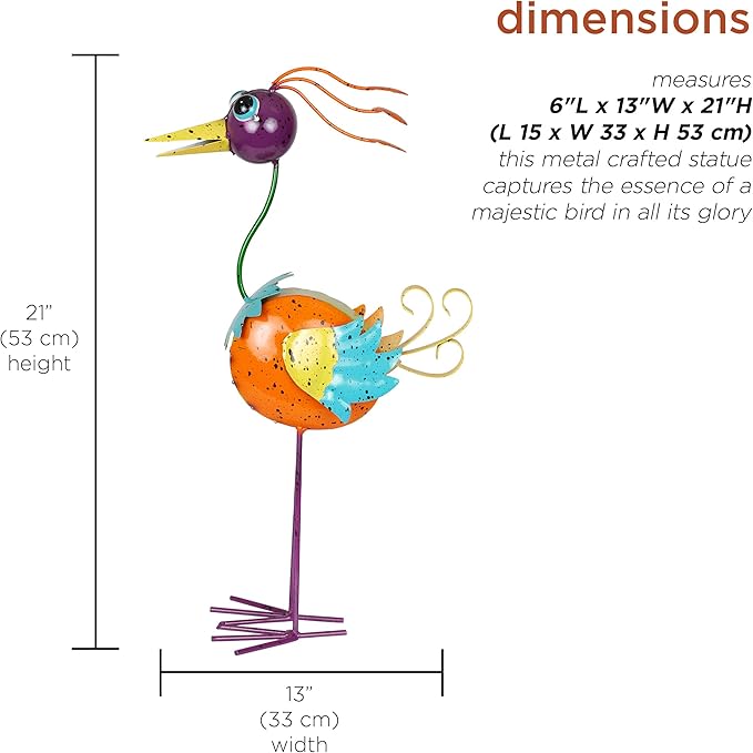 - STRIKING LAWN ORNAMENT: Elevate your outdoor decor with the Quirky Metal Rainbow Bird Decor, a captivating piece of garden decor that adds a touch of farmyard charm to any space