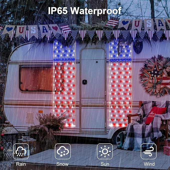 - Wide Range of Applications: Light up your love of America with our Flag lights! The American Flag Net lights are made of high quality copper wire and PVC, which make a great decoration when celebrating Veterans Day, Flag Day, Memorial Day, July 4th/Independence Day, Labor Day, Patriots Day and any other patriotic event!