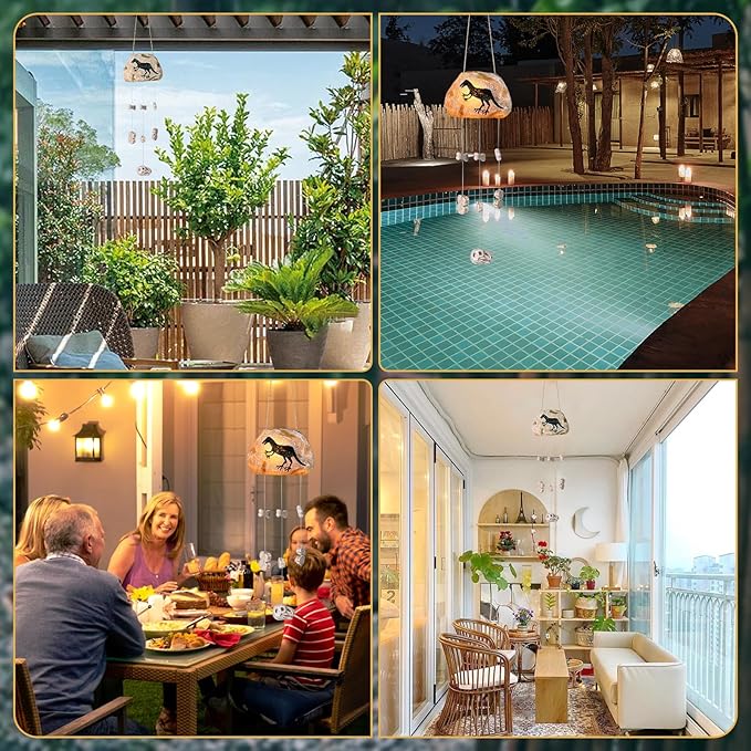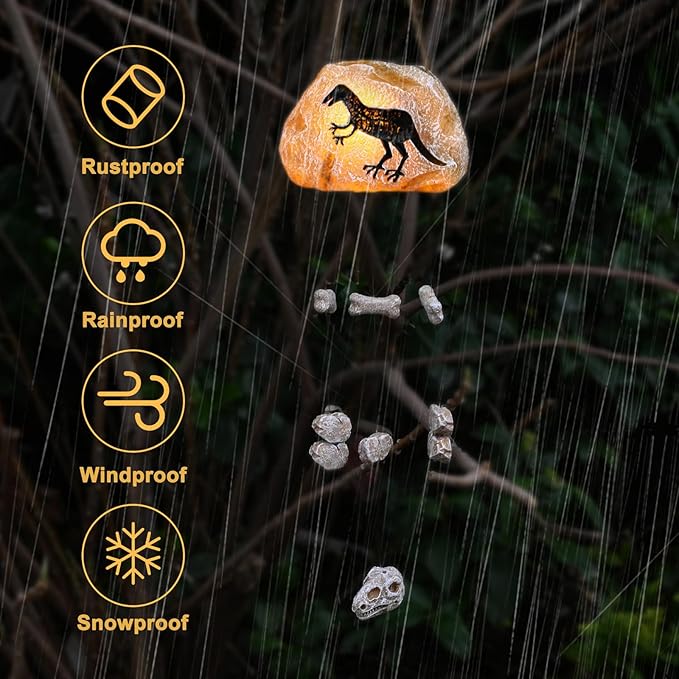 - 【WEATHER-RESISTANT DESIGN】This outdoor dinosaur hanging lights is made from durable resin for long-lasting use.Hand-painted with vibrant colors and finished with a UV resistant coating. Able withstand all types of weather conditions including heavy rain and snow,resistant to fading, not easy to crack, waterproof ,keep your statue looking brilliant.