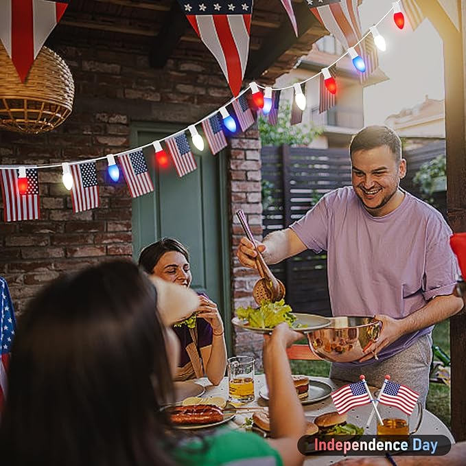 - UL Listed: UL certification for indoor and outdoor use, led outdoor patio string lights constructed with durable plastic materials, 4th of july led string lights are designed to withstand outdoor elements, ensuring long-lasting use season after season. Perfect for adding a touch of patriotic flair to any setting, these lights are a must-have for parties, holidays, or everyday ambiance.