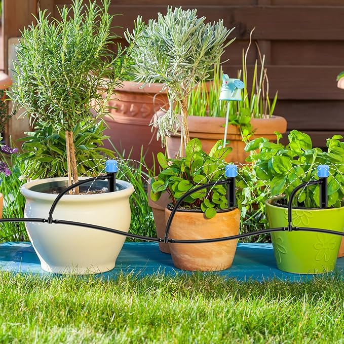 - Drip Irrigation Kit: the drip irrigation part rotates to adjust the stop, droplet, and spray, which can irrigate plants and save water; In addition, it can also be inserted into the soil for use and cleaning