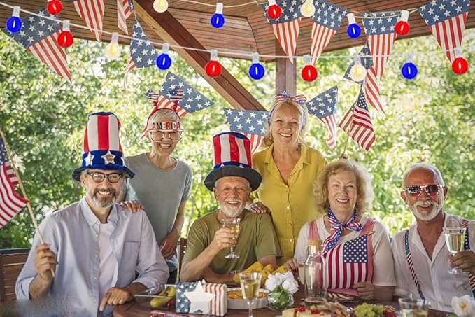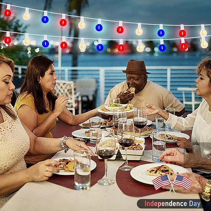 - ๐ฎ๐๐๐ซ๐๐๐๐ญ ๐๐๐ญ๐ซ๐ข๐จ๐ญ๐ข๐ ๐๐ข๐๐ญ: G40 LED outdoor string lights glow a warm white, combined with red, white and blue clear glass, creates a warm and romantic atmosphere, American flag lights is very suitable for the decoration of bedroom and living room, Independence Day, July 4th, National Day, Memorial Day, Christmas, wedding, party, home, bedroom, wall, garden or balcony decorations.