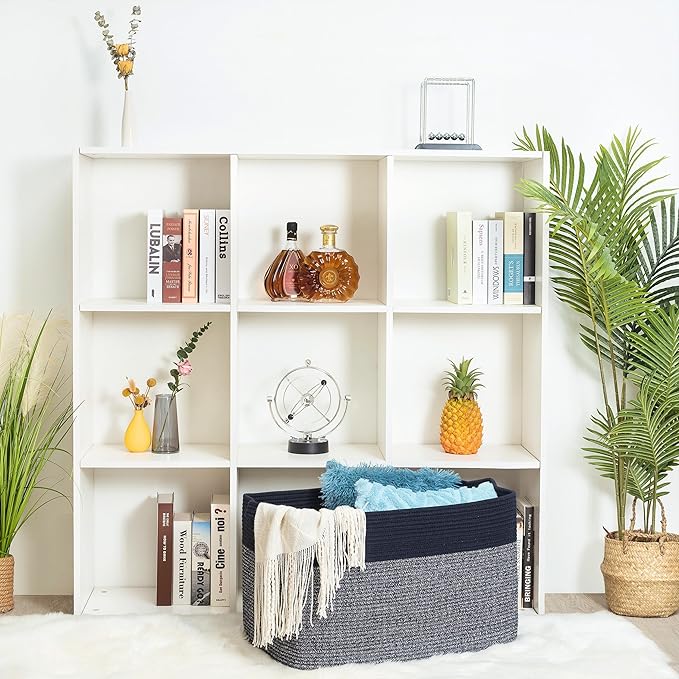 - Extra Large Cotton Rope Storage Baskets - Measured as 22"x17"x12", this large rectangle basket is big enough to store bulky items like extra blankets, pool towel, shoes, comforters, duvets, throw pillows, cushions, and stuffed animals, winter clothing, laundry, and more. It offers plenty of space for smaller miscellaneous items too, like books, magazines, and dog toys, to keep your living space neat and tidy!