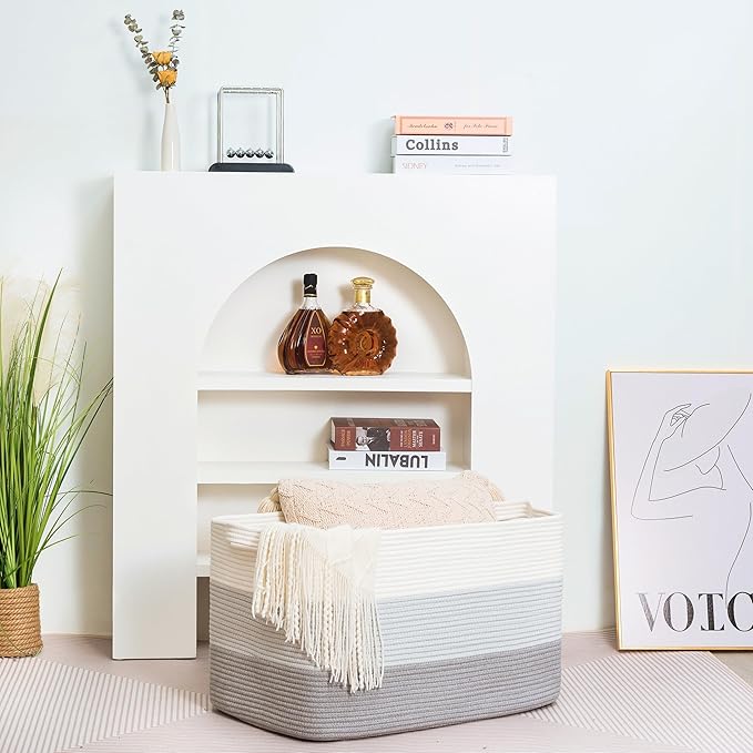 - Decorative Storage Baskets for Home Decor - A stylish, practical alternative to other boring storage solutions. Not only will our large storage baskets help you get organized, their sleek, sophisticated shape and neutral colors will complement any decor and any room: the bathroom, playroom, bedroom, living room, laundry room, mudroom, home office, entryway & more.