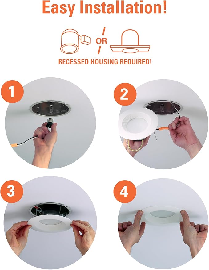 - EASY INSTALLATION: Compatible with most IC (insulation contact) and non-IC recessed housings; Wet Location-listed for indoor/outdoor use; Includes all mounting hardware (orange quick connect, E26 socket adapter)