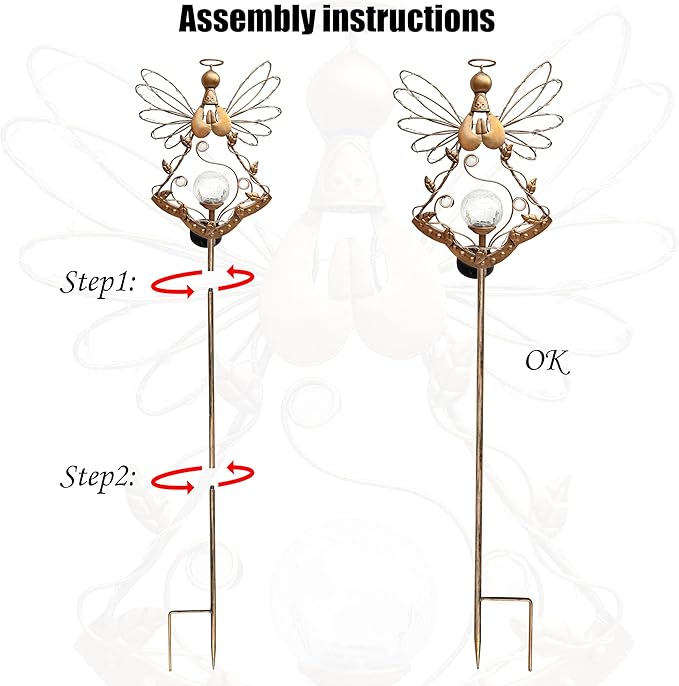 - 😇【LIGHT AT NINGHT 】This garden solar lights is designed to embellish your patio,cracked glass balls and metal angel wings will give off an enchanting glow,beautiful visual effects create romantic ambience.