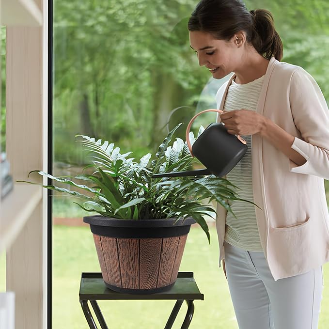 - đŒăDurable MaterialăCompared with ordinary plastic flower pots, our 14 inch plant pot are made of sturdy resin, which is lightweight, odorless, heat and cold resistant, not easy to be deformed or broken, and can be used freely indoors and outdoors.