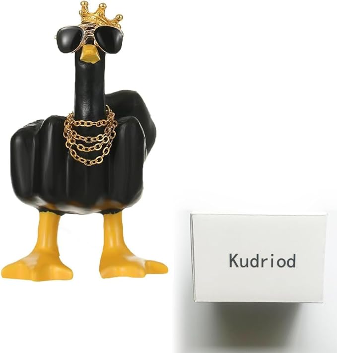 - New Design:The playful Middle Finger Duck is even cooler with the new addition of sunglasses, a necklace, and a crown that will make anyone who sees it smile and add a touch of fun to their lives, whether it's at home or in the office