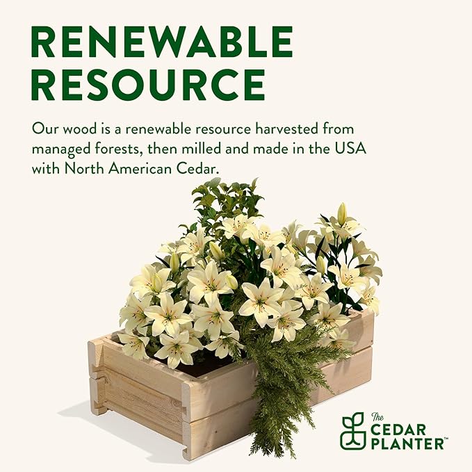 - SUSTAINABLY SOURCED AND MADE IN THE USA: our cedar wood is a renewable resource harvested from managed forests. The planter box is proudly made with North American Cedar by Greenes Fence Company, family owned and operated since 1976.