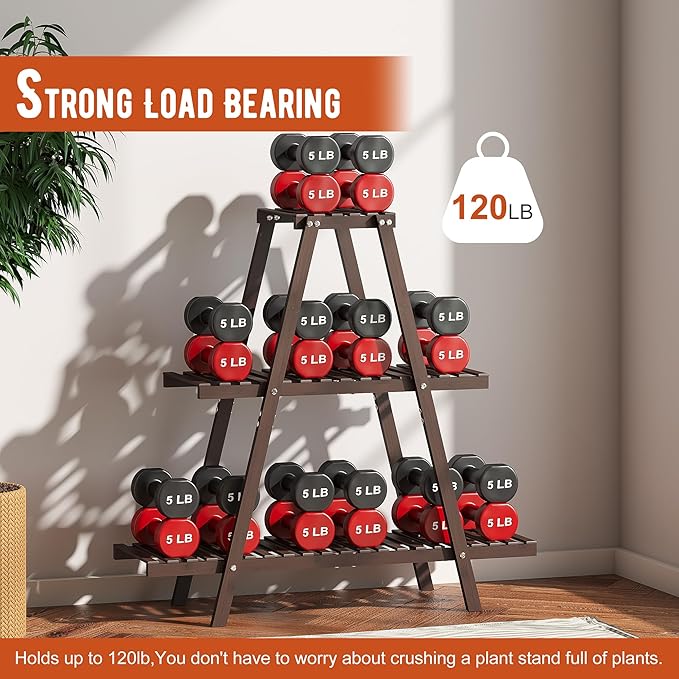 - STURDY CONSTRUCTION: Inspired by the stabilising principle of the triangle. The triangular structure makes the bamboo plant holder more stable, with a load-bearing capacity of up to 120lb.