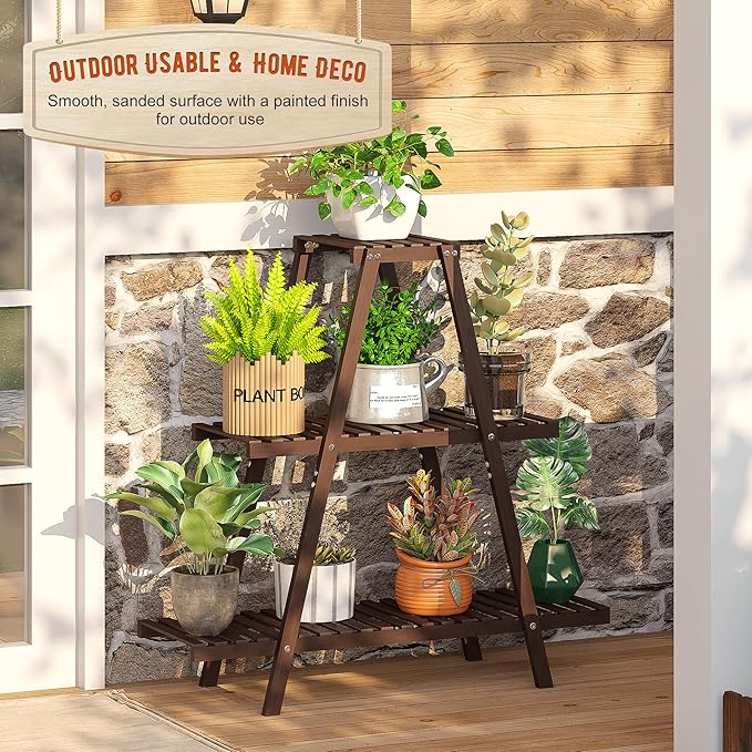 - VERSATILE DISPLAY: This 3-tier bamboo plant stand offers multiple levels to showcase various potted plants in your living space or outdoor garden.