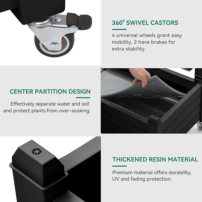 - Effortless Gardening Mobility: This planter trellis box comes with four swivel casters, two with brakes for added stability and mobility; The three rubber strips divide the planter into four grids for diversified plant cultivation