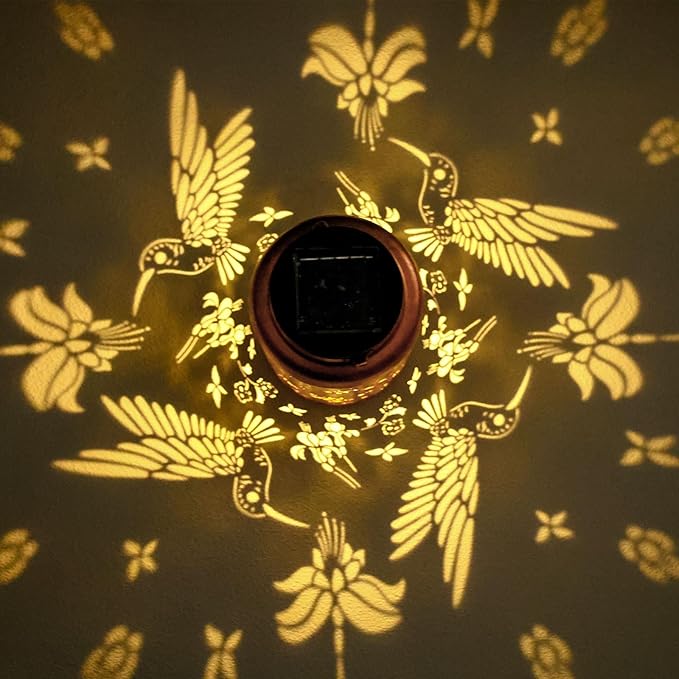 - 【Excellent Gift Options】This outdoor solar lantern hummingbird,and the light is projected on the table or ground to create a lifelike beautiful pattern,making your patio stand out.The outdoor lantern is perfect for indoors,backyards,porch,table,fence,walkways and pathway decorate. Makes a great Mother's Day,Father's Day,Thanksgiving,party,Valentine's Day,Easter,Birthday,Wedding Christmas gifts.