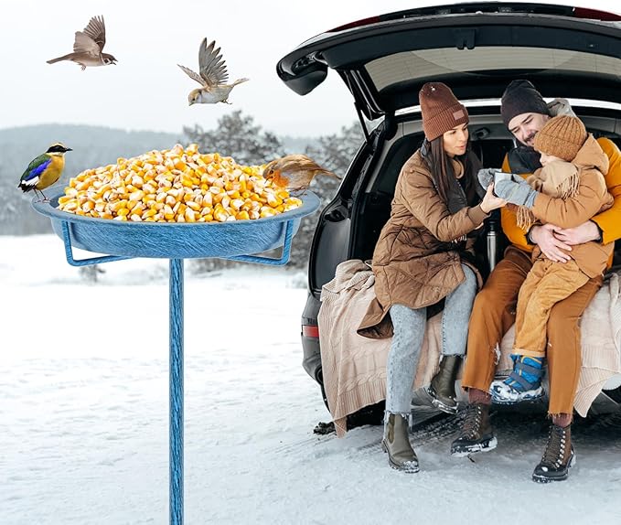 - 【Metal Bird Feeder Stand】 The whole bird bath and the pedestal are made of premium quality metal and and covered with safety coating, long-lasting and sturdy, can resist rain, water, and other weather, withstand strong sunlight and cold temperatures.