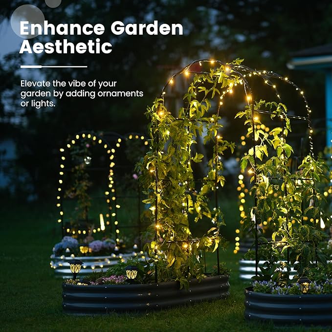 - 【Multifunctional Trellis】More than just a simple raised planter box, the trellis adds a realm of possibilities to your garden. You can hang small flower pots, decorations, and ambient lights on the trellis, or drape it with mesh or covers. As lush plants climb over the trellis, they also provide refreshing shade for your garden.