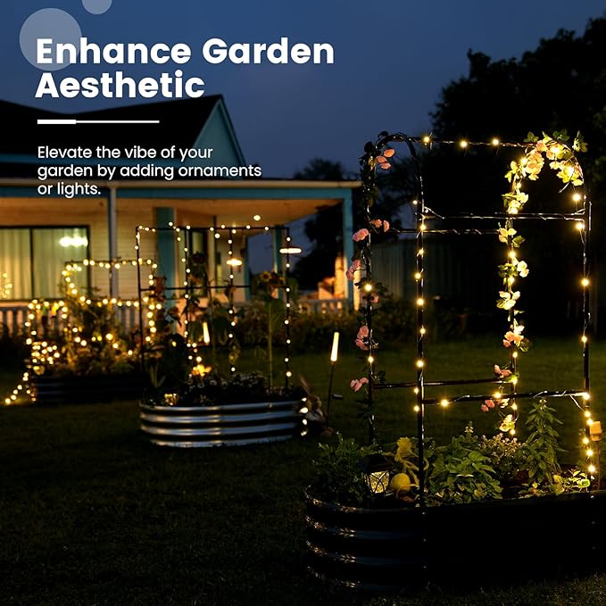 - 【Multifunctional Trellis】More than just a simple raised planter box, the trellis adds a realm of possibilities to your garden. You can hang small flower pots, decorations, and ambient lights on the trellis, or drape it with mesh or covers. As lush plants climb over the trellis, they also provide refreshing shade for your garden.