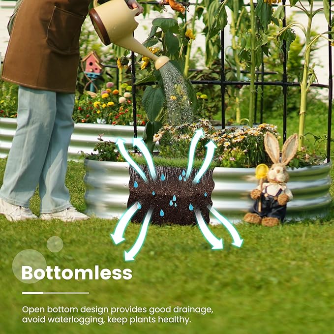 - 【Safe Rolled Edges】The edges of the metal planter raised beds are meticulously crafted with a rolled edge process, eliminating sharp edges to ensure your hands stay safe from cuts during assembly and planting, letting you safely enjoy the pleasure of gardening.