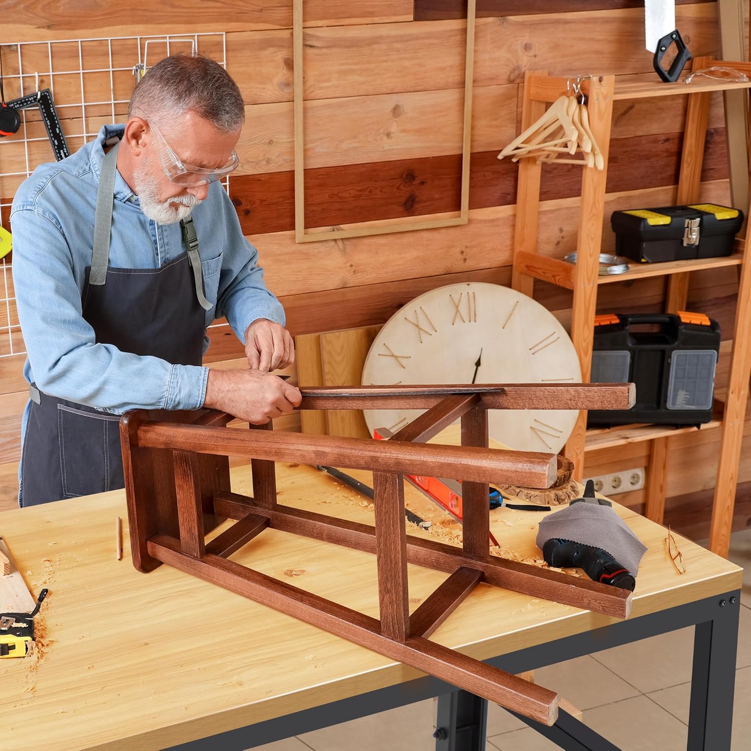 - Non-slip Foot Pad: The garage workbench is equipped with 4 durable rubber feet that prevent it from slipping. These small details are intended to keep the table stable on uneven surfaces