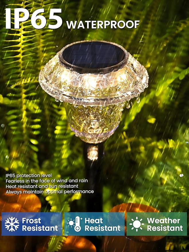 - 【Versatility】This solar pathway lights is perfect for walkway, garden, patio, flower pots, driveway, porch. It offers ample lighting and decorative ambiance. This landscape lighting is an ideal gifts for mom、friends or house warming and birthday