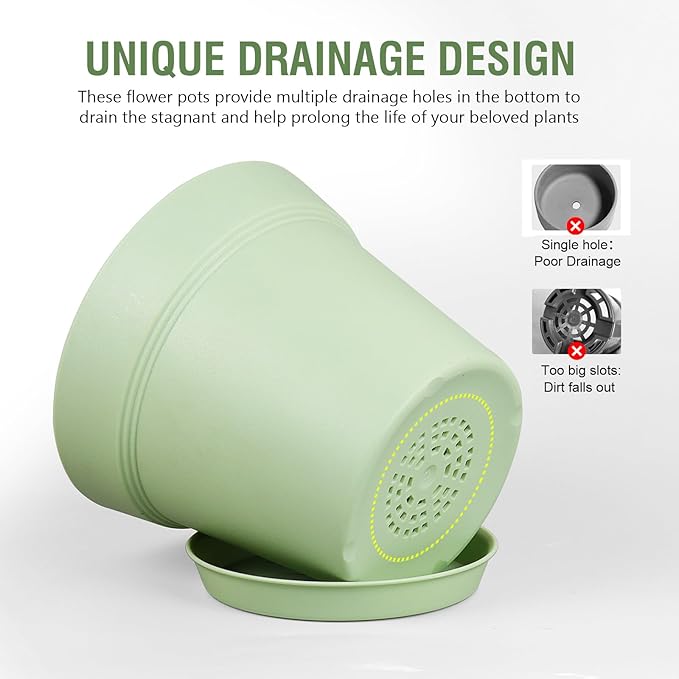 - 【Drainage Holes and Trays】Each plant pot features well-designed drainage holes at the bottom to ensure proper water flow. Additionally, saucers catch excess water, keeping your growing area clean and tidy while also ensuring that your plants remain hydrated without becoming waterlogged.