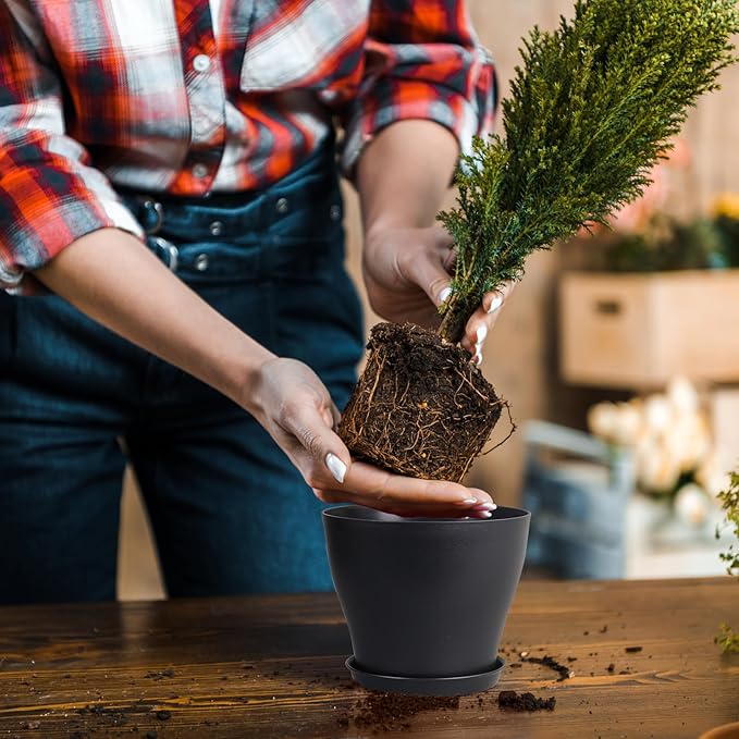 - 【Drainage Holes and Trays】Each plant pot features well-designed drainage holes at the bottom to ensure proper water flow. Additionally, saucers catch excess water, keeping your growing area clean and tidy while also ensuring that your plants remain hydrated without becoming waterlogged.