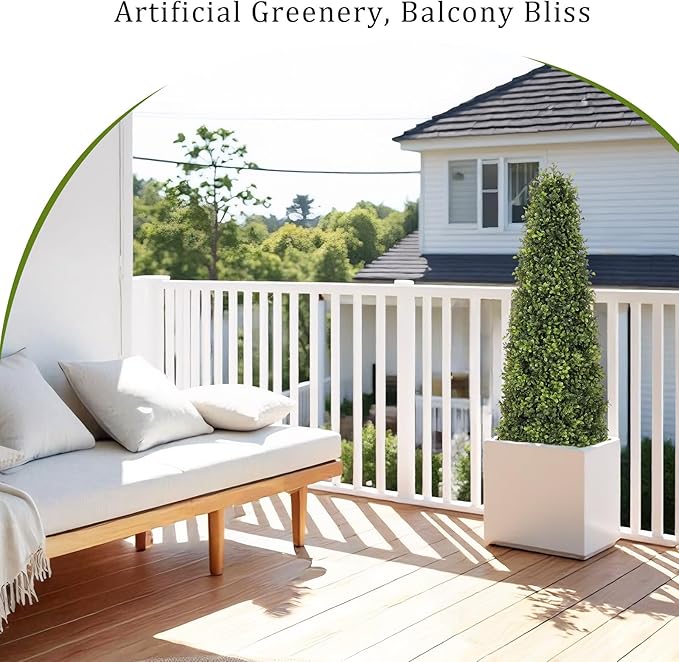 4ft Artificial Boxwood Topiary Trees (Set of 2) - UV Resistant Faux Plants Outdoor, Realistic 48in Fake Potted Bushes and Shrubs for Front Porch, Planter, Patio - Low Maintenance & Evergreen