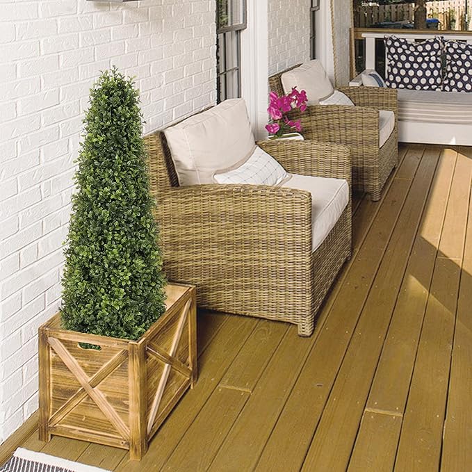 - Lifelike & Elegant Design – This artificial boxwood topiary tree features realistic foliage, varied leaf shapes, and a faux bark trunk, creating a natural look with rich green tones that enhances any space