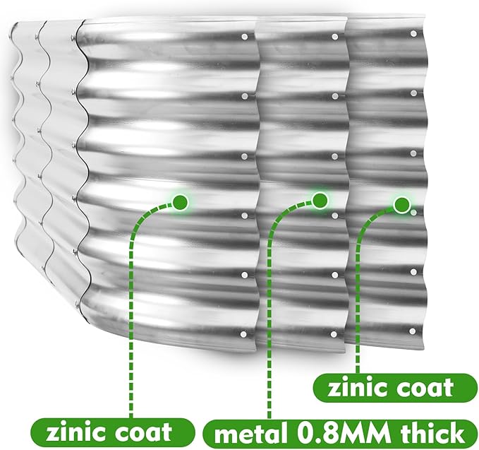 - Materials and Construction: The raised garden bed kit is constructed with sturdy metal 0.8mm thick, providing a reliable framework for your garden. The oval-shaped design adds a unique aesthetic,and the 17" height provides ample depth for plants
