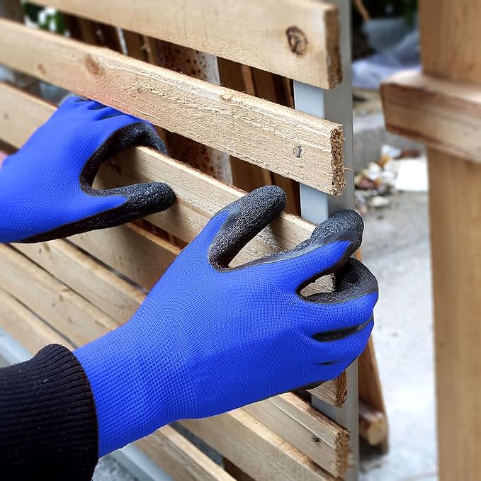 Evridwear Crinkle Latex Rubber Hand Coated Safety Work Gloves for Men Women General Multi Use Construction Warehouse Gardening Assembly Landscaping (XK-Size) Blue 120 Pairs Pack