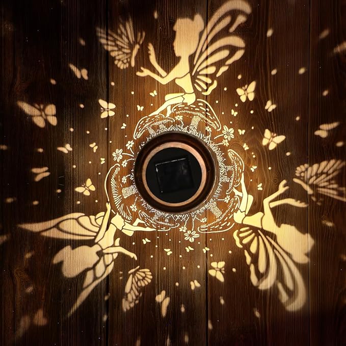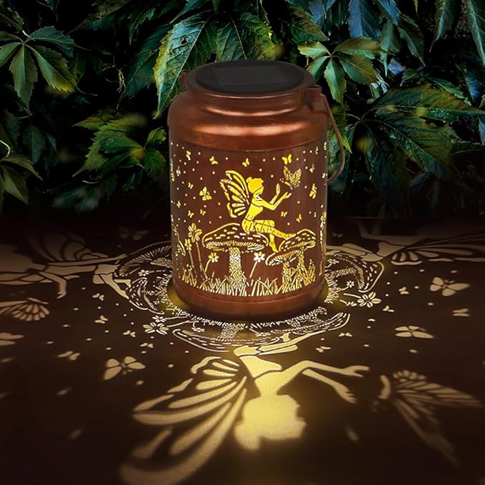 - Perfect Garden Decorations- Fairy solar lantern can project unique and beautiful patterns in a dim environment, creating a gorgeous and warm atmosphere to bring life and fun to your garden and attract your family or friends. The unique hollow out design and beautiful antique bronze color give it an artistic touch, perfect for decorating gardens, backyards, corners, Outside, sidewalks and many other scenes.