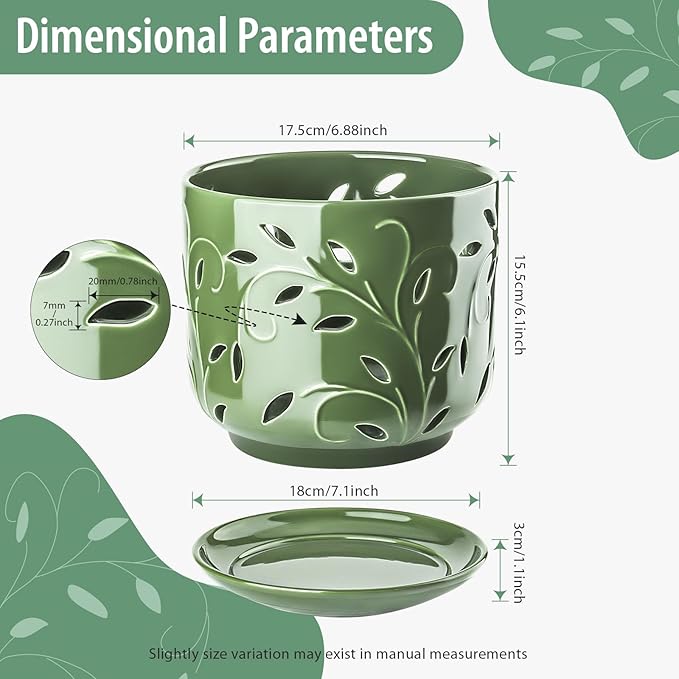 - Lighting Up Life: With delicate leaf cutouts and a unique green glaze, our orchid pot is not only a home for your plants but also a piece of home decor art. It not only enhances ventilation but also complements the beauty of the orchids, exuding elegance from every corner.