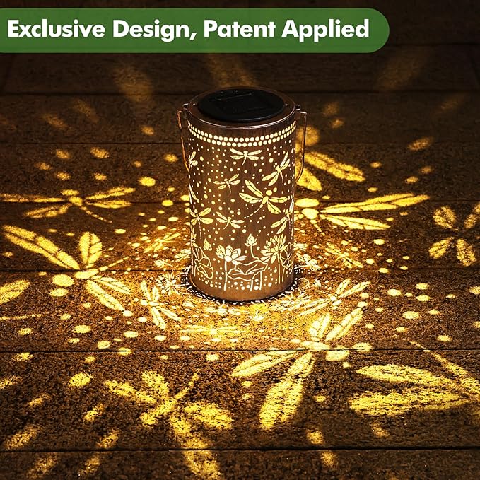 Fabuday Dragonfly Lotus Outdoor Solar Lantern Waterproof 2 Pack - Hanging Solar Power Lights Led for Outside, Garden Decor for Patio, Porch, Balcony, Yard and Deck, Gardening Decoration Gift for Women
