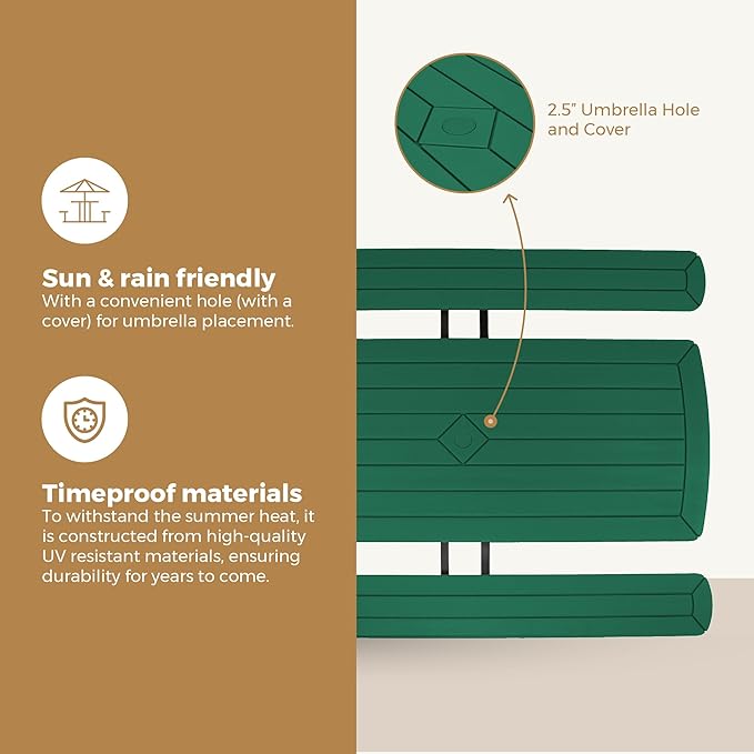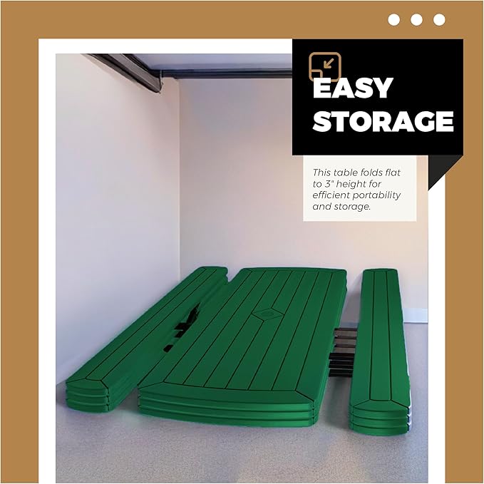 - Easy Setup and Foldable for Storage: With simple assembly instructions, this picnic table is quick to set up, and it folds flat to 3” high for convenient storage when not in use or during the offseason.