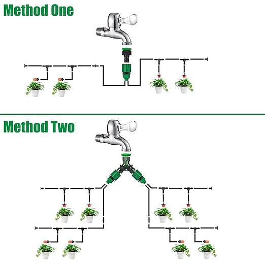 - No-leaking Y Splitter:The 2-way faucet connector can divide the drip irrigation kit up to multiple tributaries, increase the water pressure of the irrigation kit, make each nozzle work as you need. Save you from bothering your neighbors to help you take care of your plants when you are on a business trip.
