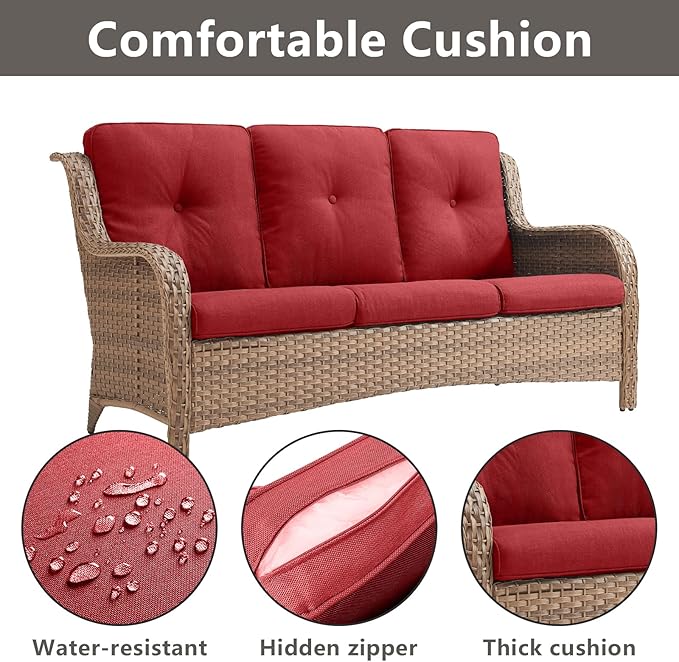 - 【Comfort Cushions & Deep Seating】This patio wicker swivel chairs and sofa feature deep and wide seats,with 4-inch thick sponge-padded seat cushions,5-inch back cushion create the ultimate patio seating experience.
